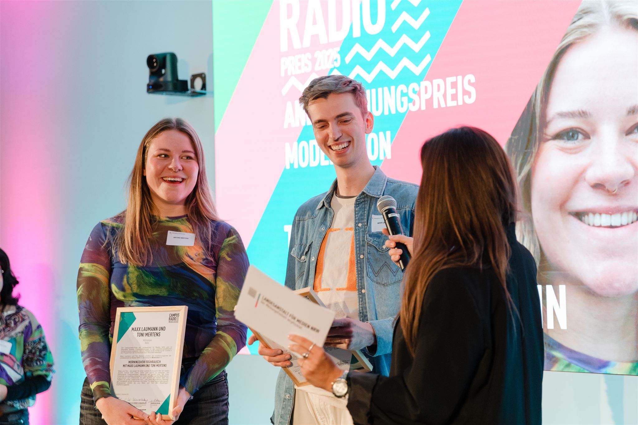 Maxx und Toni – sie sorgen für einen wahren Frührausch! Wer den beiden lauscht, kommt nicht umhin, sofort gute Laune zu verspüren. Ihre harmonische Zusammenarbeit überzeugt auf ganzer Linie. Mit hoher Kreativität und sorgfältig platzierten O-Tönen gestalten sie ihre Moderationen anspruchsvoll und professionell. Es wird deutlich: Die beiden üben ihre Tätigkeit mit großer Leidenschaft aus – und diese Begeisterung überträgt sich unmittelbar auf die Hörerinnen und Hörer. Für diese rundum gelungenen Moderationen verleiht die Jury Maxx und Toni den diesjährigen Anerkennungspreis.